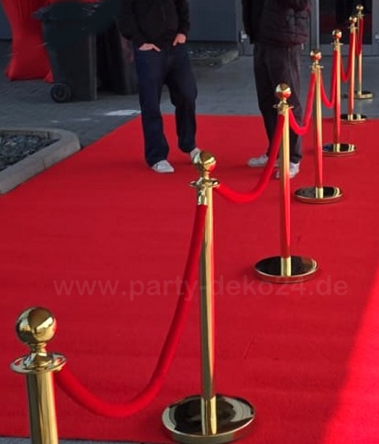 Obligatorisch für die Abiball Deko ist auch unser roter Teppich für den Eingang mit den passenden goldfarbenen Absperrständern und den roten Kordeln dazu - einfach in Hannover - Garbsen zum kleinen Preis ausleihen und abholen oder liefern lassen:
