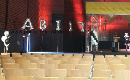 Nahezu obligatorisch auf jedem Abiball / Abiparty ist der Schriftzug "ABI" meistens auch kombiniert mit der Jahreszahl, dafür gibt es Folienballons in verschiedenen Farben und Größen, die mit Luft oder Helium gefüllt werden können: