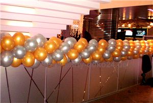 Ein Klassiker bei festlichen Dekorationen sind natürlich gedrehte Ballongirlanden, die besonders hochwertig und elegant in den Farben Gold und Silber aussehen: