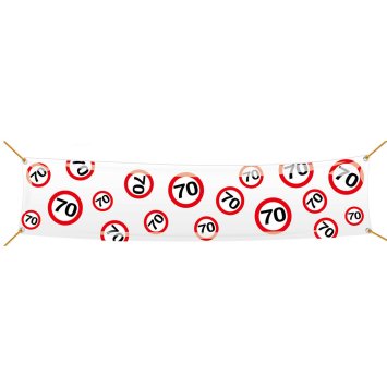 Auf gehts zur zum 70. Geburtstag. Dieser im weiß/roten Verkehrsschild Design hergestellte Banner aus Polyester eignet sich sowohl als im Außen- wie auch im Innenbereich. Schriftzug: Verkehrsschild Zahl 70 Maße: 60 cm x 3 m (1m=4,31 €) Bestandteile |