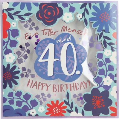 Ideale Geschenk-und Dekorationsidee ist diese aus schwer entflammbarem Papier mit Ausstanzungen, mit Silberdruck, inkl. einem Teelicht, Maße: 10,5 x 15 x 7cm hergestellte Lichttüte zum 40.Geburtstag. Lagerbestand: 4 Stück |