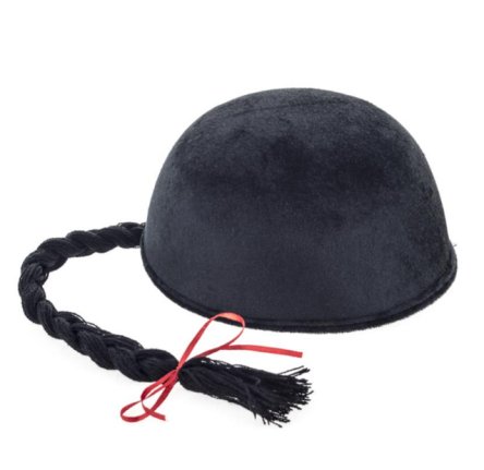 Aus schwarzem Polyester hergestellte Kappe/Hut mit geflochtenenm Zopf für Sie und Ihn für ein chinesisches Outfit / Verkleidung zu Karneval, Fasching oder dem chinesischem Neujahrsfest. Maße: 20 x 20 x 9,5 cm Nicht waschen | Nicht chemisch reinigen | Nicht bleichen | Nicht im Trockner trocknen |Nicht bügeln Bestandteile |