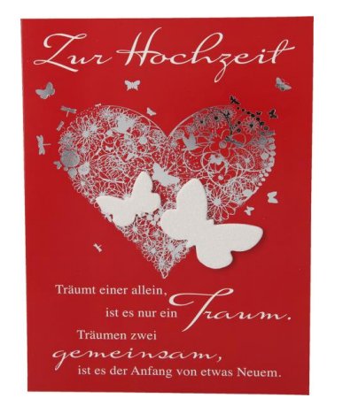 Möchtest du deinen Eltern, Großeltern oder langjährigen Freunden eine unvergleichliche Freude zur Goldhochzeit bereiten? Dann ist unsere Pop-Up Karte goldrichtig für diesen Anlass! Beim Öffnen der 3D Karte entfaltet sich ein goldener Ehering, verzier Lagerbestand: 3 Stück Maße: 12 x 17,5 cm inkl. cremef. Umschlag.Hersteller:papercrush GmbH, Mühlenstr. 8a,D-14167 Berlin Bestandteile |