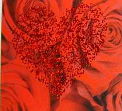 Beilege Karte mit Umschlag und ausgestanztem Loch. Maße:8x8 . Motiv:rote Rosen |