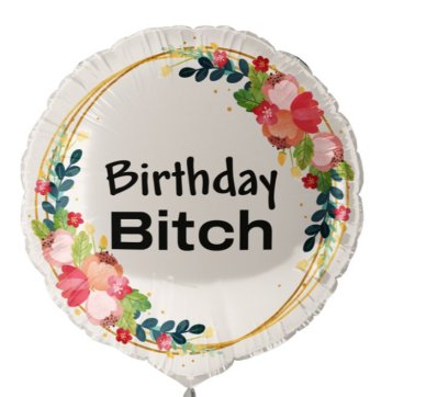 Folienballon zum Geburtstag in frecher Form. Rund und speziell. Aufschrift: Birthday Bitch . Maße: 45 cm Lagerbestand: 10 Stück Befüllbar mit oder ohne Helium ! Dieser Artikel ist ungefüllt ! Achtung: Nicht für Kinder unter 8 Jahren geeignet ! Erstickungsgefahr durch Kleinteile ! Bestandteile |