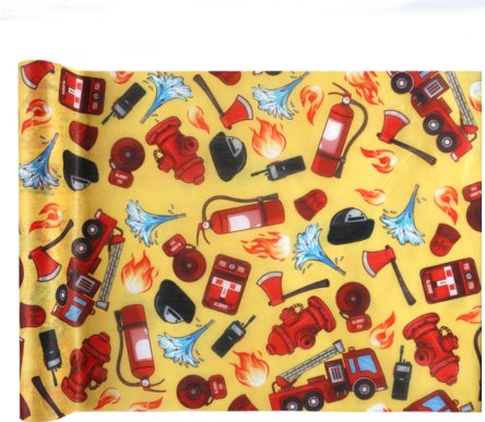 Geburtstag, Firmenfeier Dekorationsartikel in Form von diesem Tischläufer aus Polyester mit Feuermelder,Feuerlöscher,Feuerwehrauto,Feuer.. Design. .Breite: 30 cm, Länge: 5m.(1m=1,39 €) Hersteller:Santex 609 rue jacqueline Auriol - Parc des murons 42160 ANDREZIEUX BOUTHEON - France |